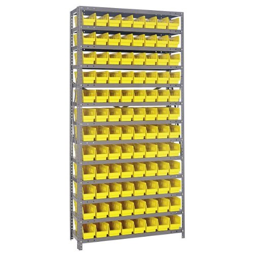 Shelf System with 96 Bins (4"H x 4.125"W x 11.625"L) (Yellow) (12"D x 36"W x 75"H)