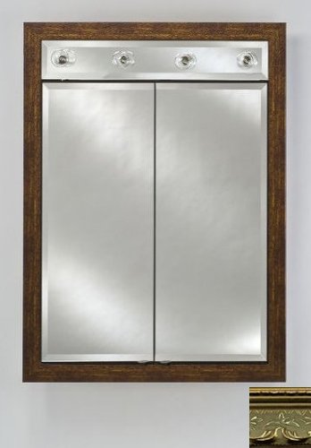 Afina Corporation DD-LC2434RMAJGD 24 in.x 34 in.Recessed Double Door Cabinet with Contemporary Lights - Majestic Gold
