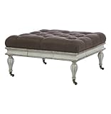 | ✚✚✚ Lancaster Regency Style Vintage Ivory Coffee Table Ottoman Why should you sacrifice style for function when you don't have to? This old world inspired tufted ottoman is a perfect example of having the best of both worlds: distinctive finishes and details with storage designed for modern life. Caster feet and four drawers are built into the base and a one year warranty covers the piece, inch by stylish inch. Please allow up to 4-6 weeks to produce as each table is made to order here in the U.S.