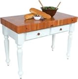 | ✚✚✚ John Boos - Rustica Island, 2 Drawers & Shelf, Cherry End Grain Top This Rustica Kitchen Island from John Boos has a Cherry end grain top and a painted Alabaster base. The kitchen island is available with one or two dovetailed utensil drawers and can also be ordered with or without a lower shelf. Ideal for food preparation and serving, the kitchen island also works well as an eating area. The kitchen islands with 1 drawer measure 30 W x 24 D x 34-1/2 H, and the kitchen islands with 2 drawers measure 48 W x 24 D x 34-1/2 H. Ships via truck.