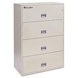| ✚✚✚ Sentry Safe 4-Drawer Fire-Resistant Lateral File Cabinet, 36inch W, Dock-to-Dock Delivery 4L3610P The sleek design of the Sentry Safe 4-Drawer Lateral Fire File makes it an ideal addition in any office environment. The lateral file carries the UL Classification for one hour fire protection. Color: Putty. Number of Drawers: 4. Dimensions: 53-13/16inch H x 35-13/16inch W x 20-3/8inch D. Lockable: Yes. UL Classified Fire Endurance (1 hour at 1700 degrees F). Protects documents, records and valuables against catastrophic loss. UL Classified Explosion Hazard Resistance. Design integrity protects contents against explosions in case of sudden exposure to intense heat. Impact: UL Classified 30 foot Drop Test. Equivalent to falling two stories; contents remain intact and locked. Plunger key lock secures all drawers. Drawer-specific lock/unlock provision. Provides additional security by isolating access to specific drawers. Lateral footprint design (available in three widths). Provides more space for higher volume filing needs. Lined interior conceals cabinet insulation and protects contents from unwanted dust. Rugged suspension system design. Ensures smooth and easy drawer movement even when fully loaded. Drawer layout flexibility accommodates legal and letter size hanging file folders. Seamless design provides a sleek, attractive high-end appearance. Easy-to-use recessed handles with label holders