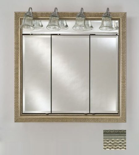 FeaturesSatin anodized aluminum body construction.Triple mirror doors.Traditional lights.3/4 Front bevel (standard).3/8 Adjustable glass shelves. Signature Triple Door Medicine Cabinet with Traditional Lights Finish: Elegance Silver, Size: 47" x 40"?