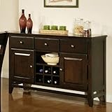FeaturesCasual-style server finished in deep Espresso brownSolid mango woodThree drawers, shelving behind two doors, and wine bottle storageTongue-and-groove constructionDimensions: 54W x 18D x 36H inchesYou find a Best