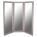 | ✚✚✚ Antique Silver Full Length Free Standing Tri-Fold Mirror- 66W x 70H in. Smart style in a sophisticated piece, the Antique Silver Mirrored Room Divider - 66W x 70H in. offers the privacy of a screen and the dimension of a mirror, all in one classic model. Crafted from quality wood and finished in antique silver, this divider makes it easy to maximize your favorite space. Complete with three panels, a beveled mirror edge, and four hanging hooks. About Hitchcock-Butterfield Dedicated to enduring quality, customer satisfaction, and timeless style, the Hitchcock-Butterfield Company grew out of a retail store operated by J. Frederic and Vera Cohen for more than four decades. This St. Louis, Missouri-based company offers a full range of products that are proudly designed and manufactured here in the USA. With many years of experience on their side, the innovative team at Hitchcock-Butterfield produces stylish, versatile accent pieces to reflect your unique tastes. Durable wood with antique silver finish. 1.25-inch beveled edge. 3-panel design. Includes 4 hooks for easy hanging. Dimensions: 66W x 70H inches.