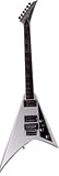 | ✚✚✚ Jackson Elite Series Randy Rhoads Electric Guitar - Quick Silver The Jackson Elite Rhoads (RR) solid body electric guitar is built with the highest grade components, a pair of Seymour Duncan Pickups, recessed Original Floyd Rose Tremolo, 22 jumbo frets, and a neck-thru neck with an ebony fretboard. Contols include one volume and two tone controls which allows for tight bass, glassy mids, and shimmering highs. Jackson's compound radius fingerboard curves dramatically at the nut for easy and comfortable chording and flattens out as it approaches the neck joint for low action bends without fretting out. With a more relaxed hand, you have more endurance to play longer...and better.