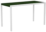 | ✚✚✚ 73.12 in. Modern Bar Table in Green w Textured White Frame Includes hardware pack and assembly tool. Eco friendly. Solid, heavy-duty construction. Commercial grade stainless steel hardware. Easy to clean with soap and water. Warranty: Twenty years limited on residential and one year on commercial use. Made from high quality textured aluminum and high-density polyethylene lumber. Made in USA. 73.12 in. L x 35.18 in. W x 42 in. H (79 lbs.). Care Instruction. Assembly Instruction Reserved for evenings and weekends, this bar height table is designed to create memories. This product does not splinter, crack, chip, peel or rot and it is resistant to corrosive substances, insects, fungi, salt spray and other environmental stresses, by providing the look of painted wood without the maintenance. Polywood lumber requires no painting, staining, waterproofing or similar maintenance.