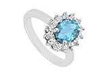 Blue Topaz and Diamond Ring : 14K White Gold - 1.50 CT TGW Size 7.5