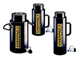 | ✚✚✚ Enerpac RACL-1502 Aluminum Lock Nut Cylinder 150 Ton with 2 Inch Stroke Enerpac Aluminum Lock Nut Cylinders provide mechanical load holding for extended periods. A hardened steel stop ring increases cylinder life and resistance to side loads of up to 5 percent. The hard coat finish on all surfaces resists damage and extends cylinder life, and composite bearings increase cylinder life and side load resistance. Handles are included on all cylinder models. Cylinders feature a steel base plate and saddle for protection against load induced damage, and an integral stop ring prevents plunger over travel and is capable of withstanding the full cylinder capacity. A high strength return spring for rapid cylinder retraction, and the CR-400 coupler and dust cap are included on all models.