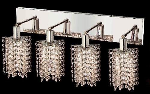 #1284W-O-P-CL/EC Crystal Color / Crystal Trim: Crystal (Clear) / Elegant Cut Features: -Wall sconce.-Oblong canopy. Includes: -36'' Chain / wire included. Color/Finish: -Finish: Chrome. Specifications: -Accommodates: 4 x 55 - 220W Max 110V-125V (GU10) bulb. Dimensions: -Hanging weight: 12.-Dimensions: 8'' H x 26'' W. Collection: -Mini collection.
