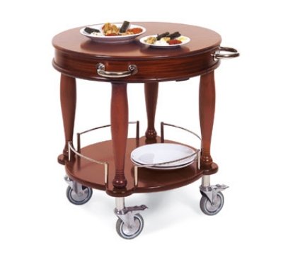 Lakeside 70029 29.5-in Round Wood Veneer Serving Cart w/ Pull-Out Shelf, Each, specifications, descriptions, pricing updates and more desirable for this product!