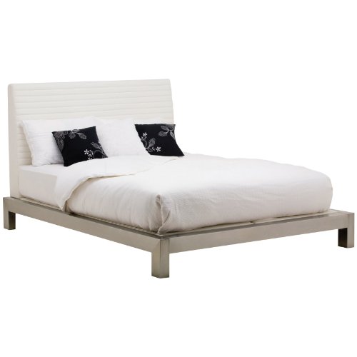 FeaturesPadded faux leather-upholstered headboardSleek and sturdy stainless steel frameChoose black or white upholsteryNo box spring requiredVariety of bed sizes Barton Platform Bed Size-Color - King - White?